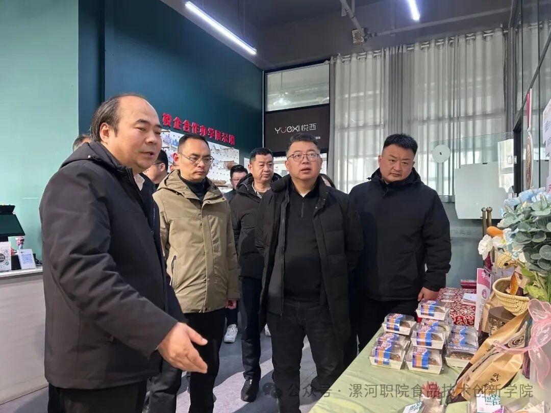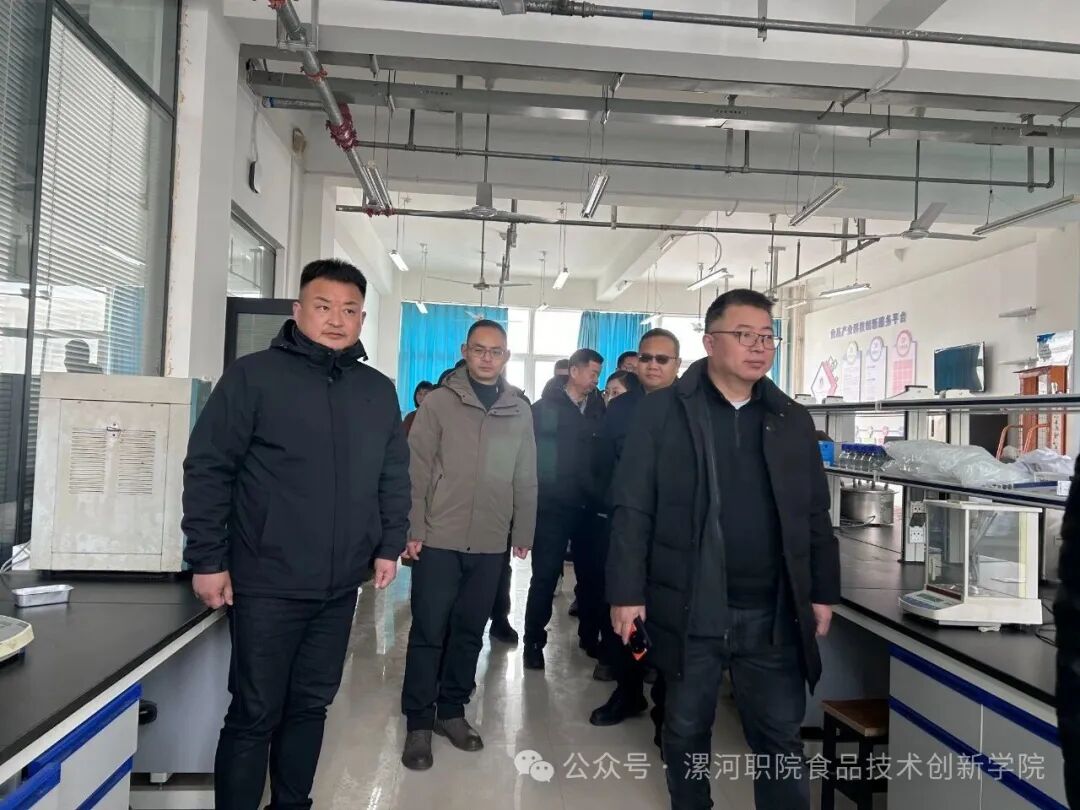 考察团一行首先参观“休闲食品加工技术河南省协同创新中心”及食品技术创新学院重点实验室。详细了解近年来学院在休闲食品加工、功能食品研发领域取得的系列成果。刘明博士高度关注学校以产业需求为导向的人才培养模式和科研布局,为后续深化合作奠定了直观认知。
