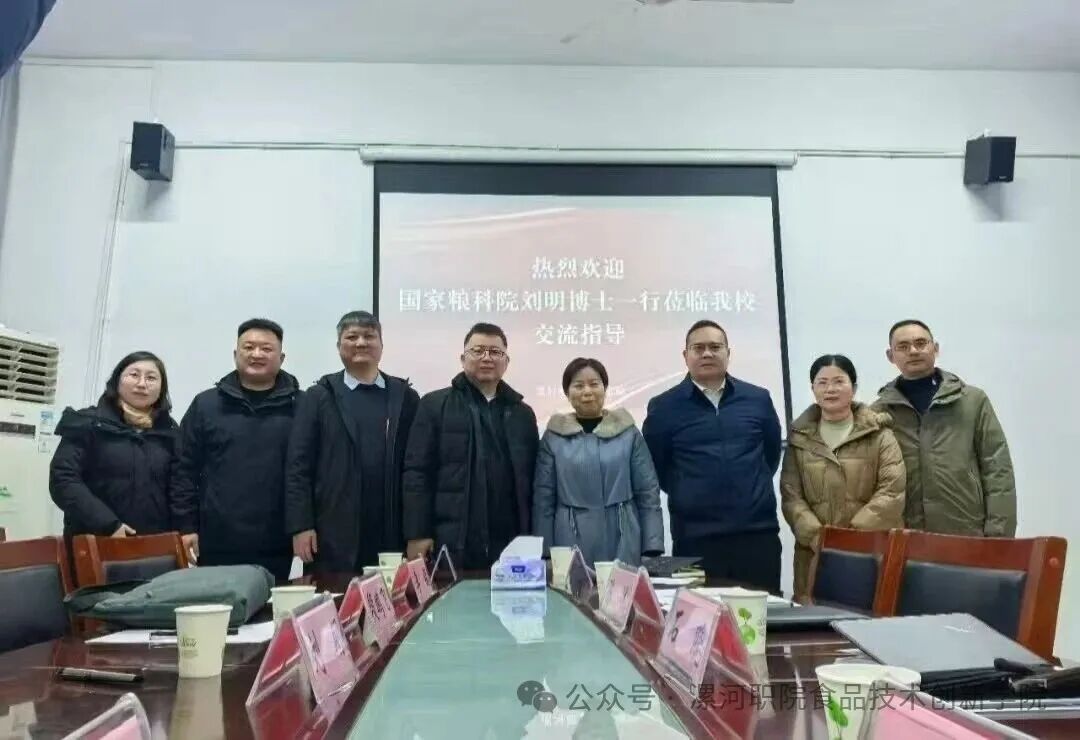 1月21日下午,国家粮食和物资储备局科学研究院粮油加工研究所副所长、研究员刘明博士,携副研究员姜平博士一行,莅临漯河职业技术学院食品技术创新学院考察交流。郾城区人民政府副区长段鹏飞,郾城区科学技术局局长李铭郾城区工业信息化局副局长周素娜,河南碧野面粉有限公司董事长董勇全程陪同。学校党委委员、副校长石晓,科研处处长娄琳,食品技术创新学院院长陈冰等领导出席活动。会议由科研处处长娄琳主持。